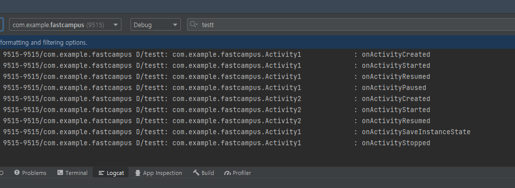 - Application Context에서 Activity1과 Activity2의 라이프사이클 확인.