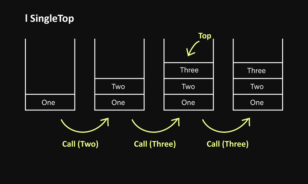 - 가장 위(Top)의 액티비티는 중복해서 쌓이지 않는다.