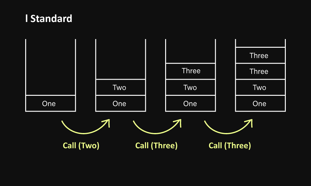 - 쌓여있던 스택은 남아있고, 새로운 스택 공간이 하나 더 생긴다.