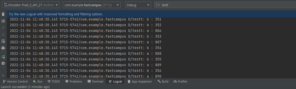 Log.d("testt", "b : " + b)