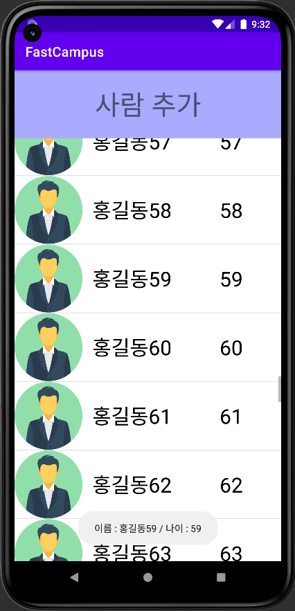 adapter.peopleList.add(People("새로운 홍길동", 1234)) // 데이터 추가(변경)