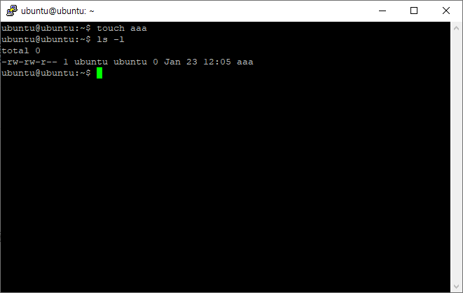 -rw-rw-r-- 1 ubuntu ubuntu 0 Jan 23 13:50 aaa