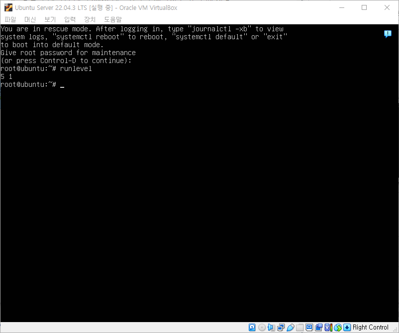 - 두 개의 값이 출력되는데, 첫 번째 값은 이전 런레벨, 두 번째 값이 현재 런레벨임.