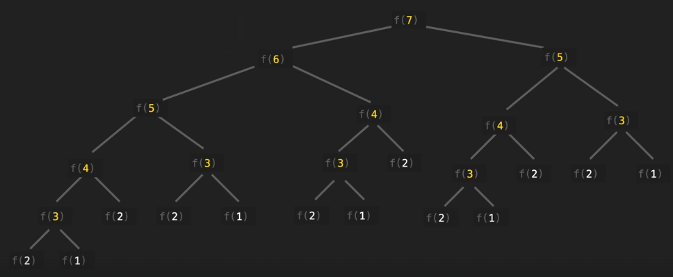 - f(6) 1번, f(5) 2번, f(4) 3번, f(3) 5번, f(2) 8번, f(1) 5번의 계산이 일어남.